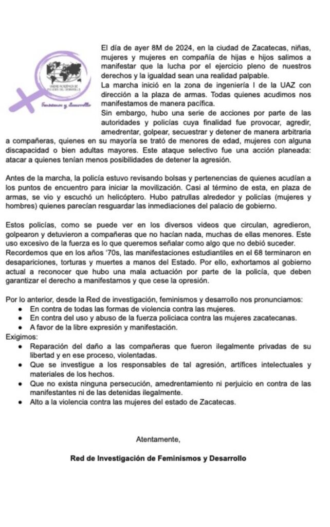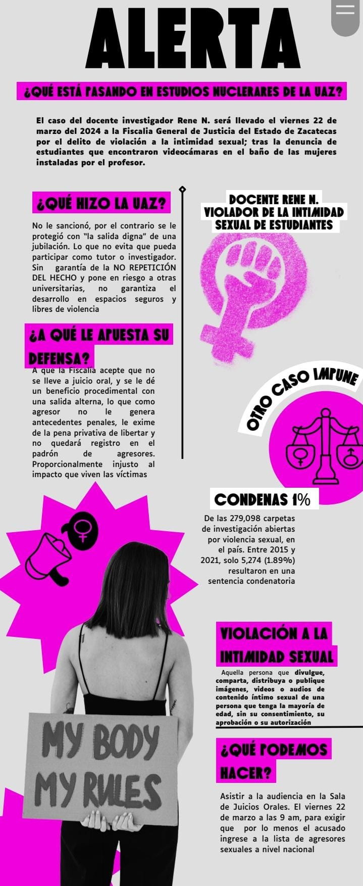 Pronunciamiento 17 de octubre 2024 Pronunciamiento 8M 2024 ALERTA. ¿Qué está pasando en estudios nucleares de la UAZ?
